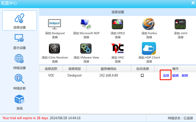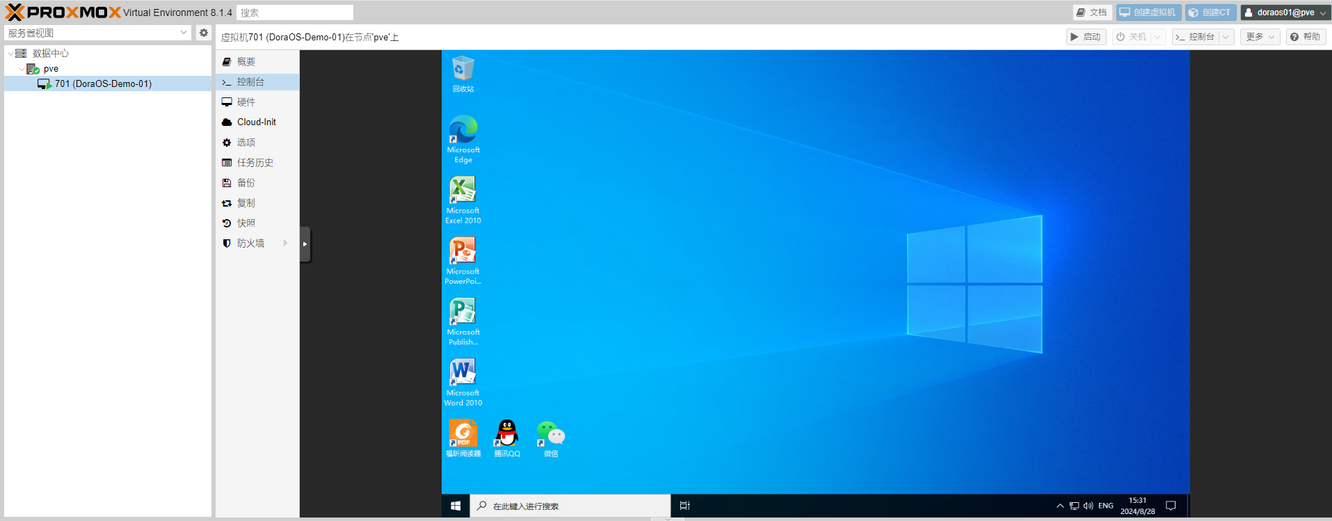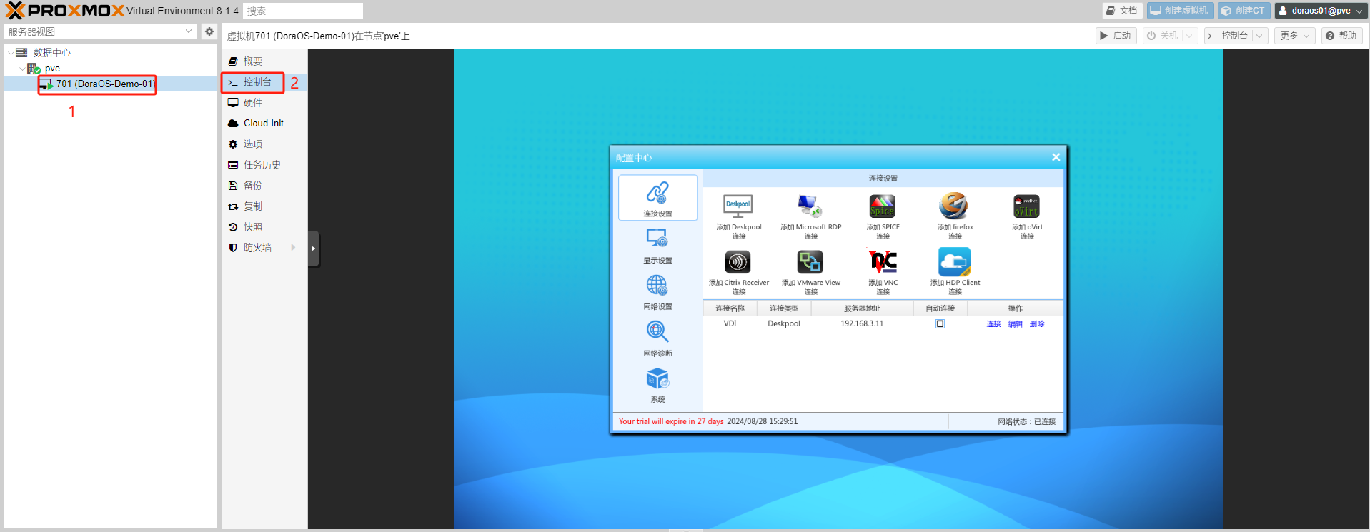 3.点击连接,即可登录win10虚拟机。doraos支持多种方式连接,用户可根据自己的需求创建不同连接。