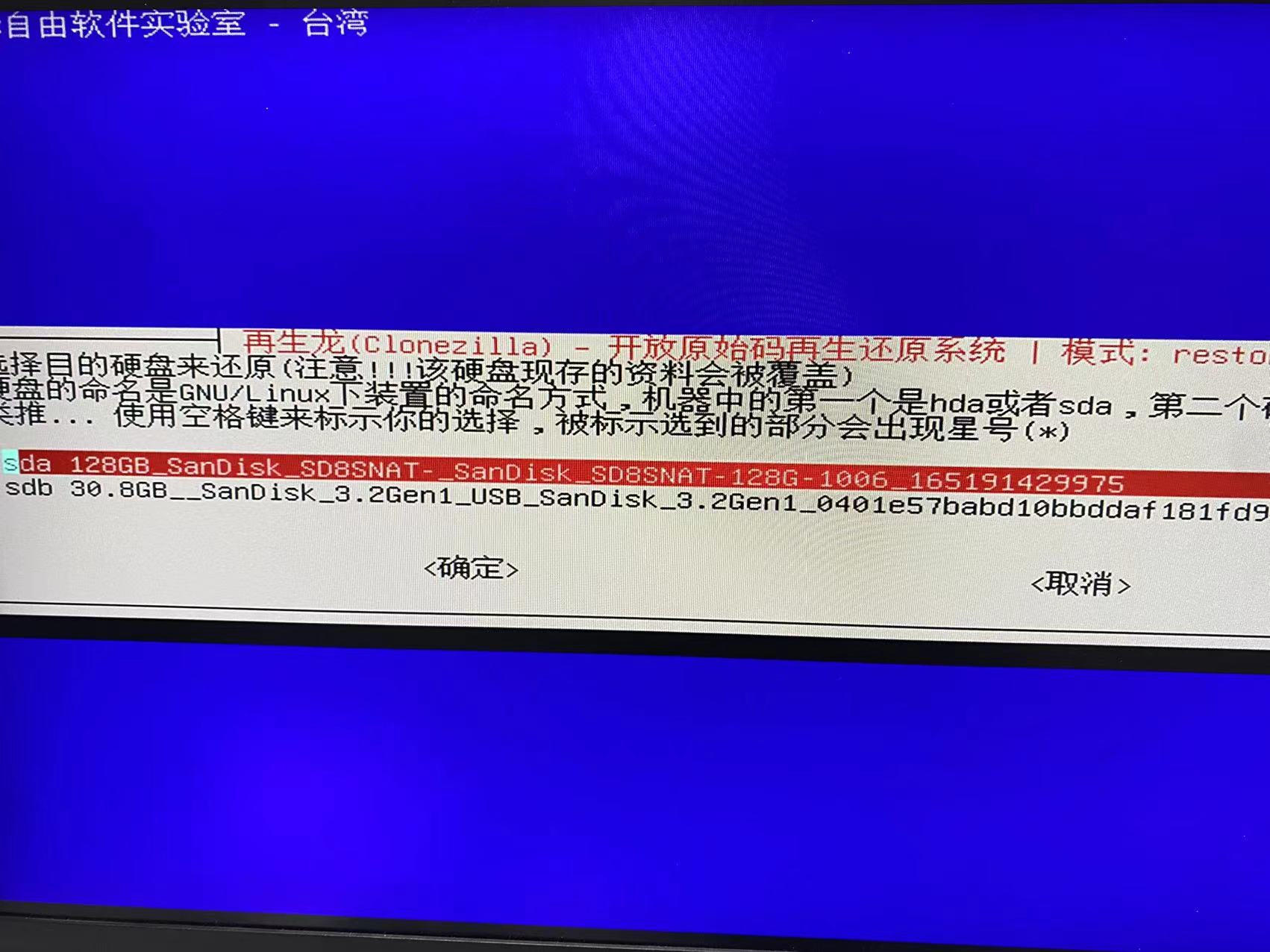 3)磁盘选择,系统安装会对磁盘格式化,注意选择好磁盘。