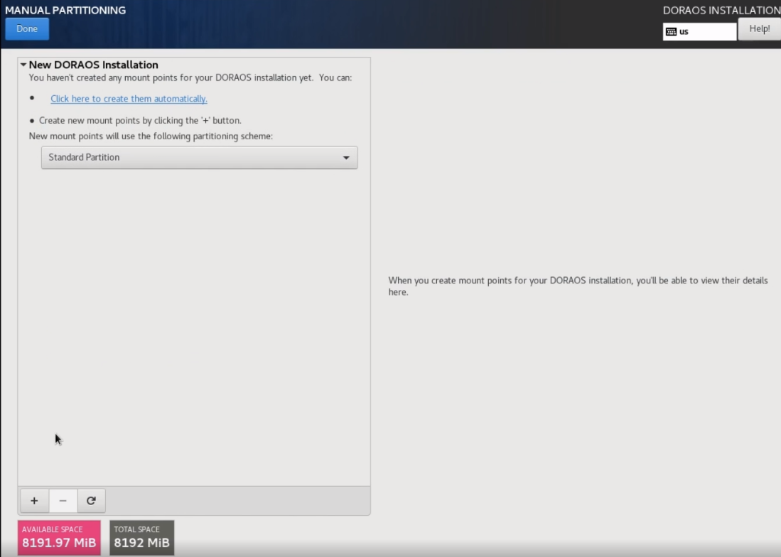 b:选择手动分区(自动分区是左边选项,选择自动分区的话可以跳过第2.3步建立分区步骤)