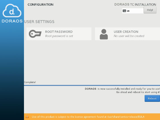 系统重启后可以免费试用30天,如需要激活系统请联系深圳市朵拉云科技有限公司www.doracloud.cn获取激活码。看到下图信息,说明DoraOS系统安装成功。